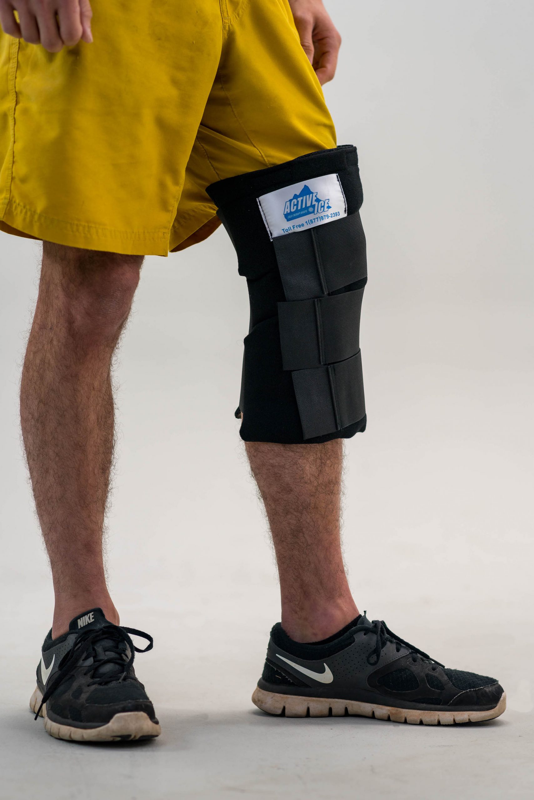 The ice knee wrap provides cold therapy to the knee, lower quad and upper shin for a full-coverage treatment solution.